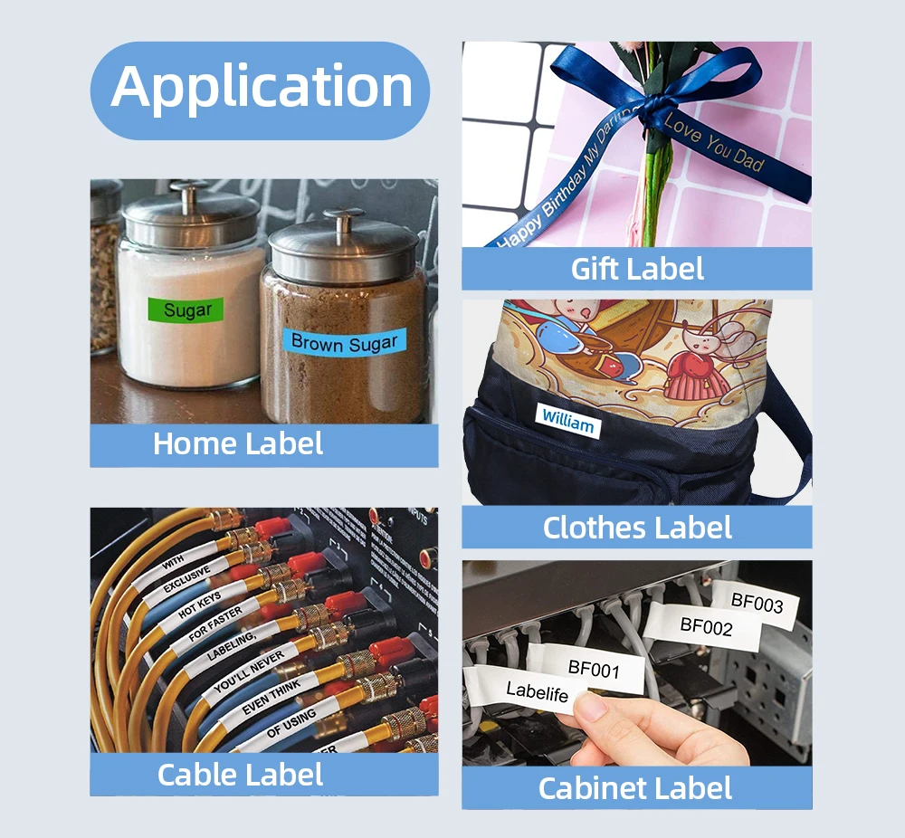 1. The E1000 label printer can be used to label and organize construction sites, electricians, factories, telecommunications, laboratories, mailboxes, fixed assets, etc., including electricians, technicians, mechanics, outdoor operators, etc. ;